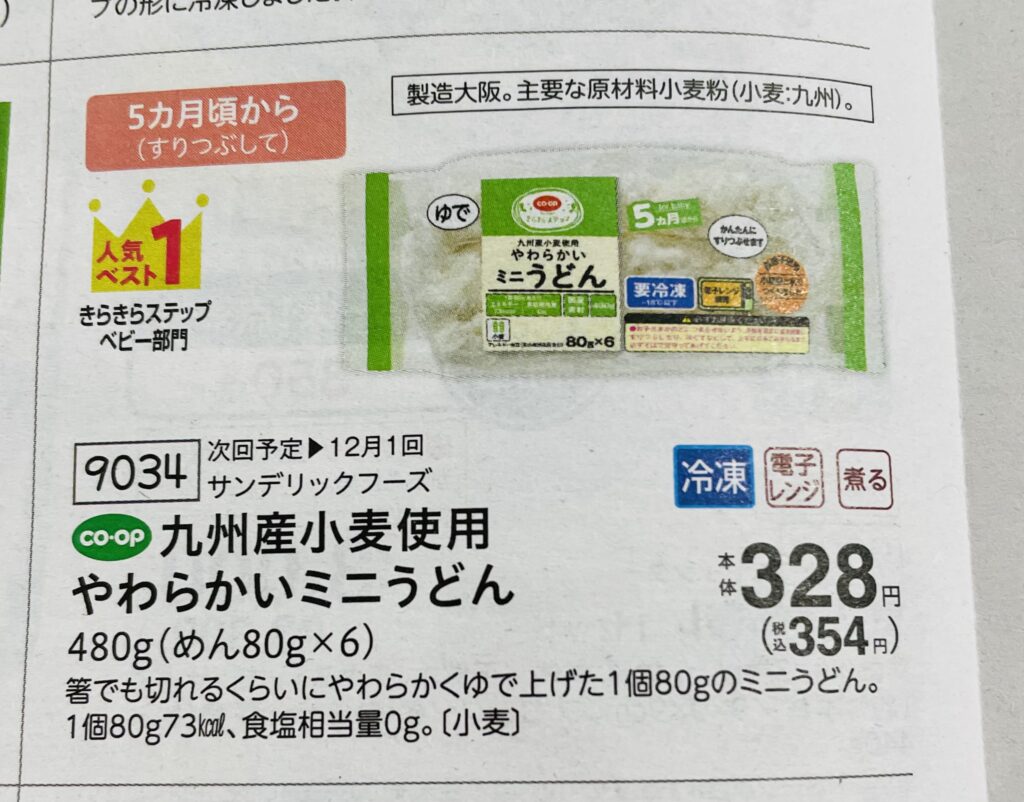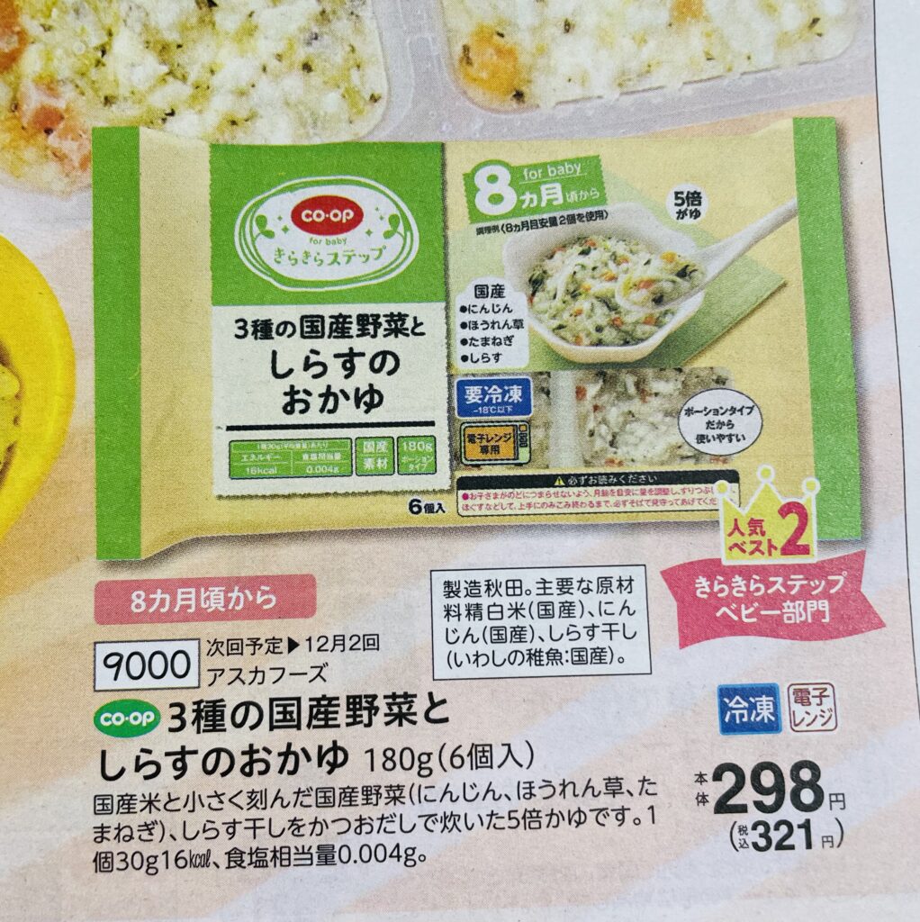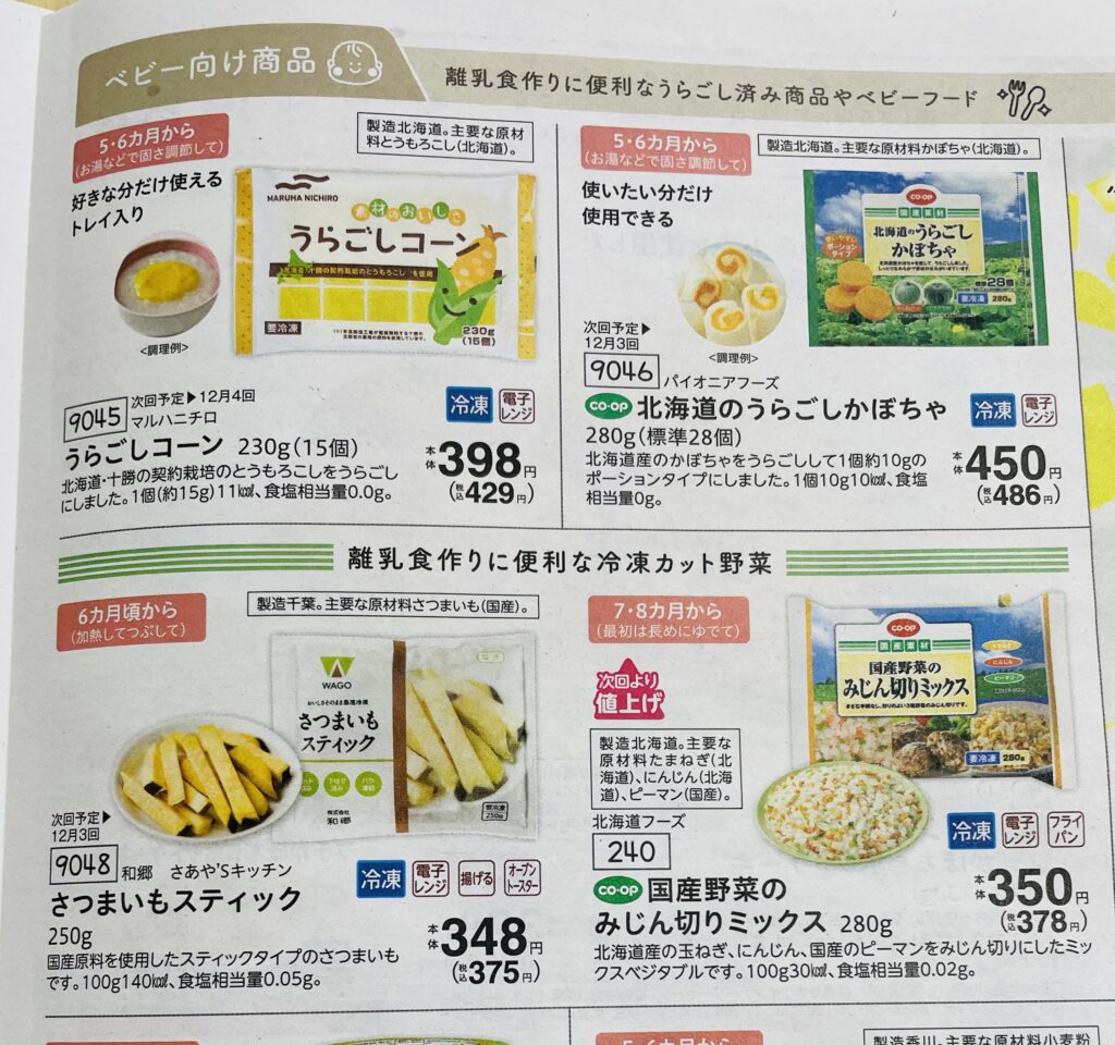 コープデリの離乳食カタログは、