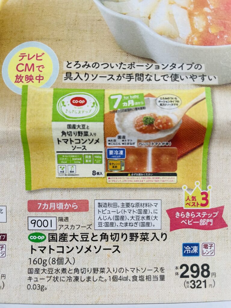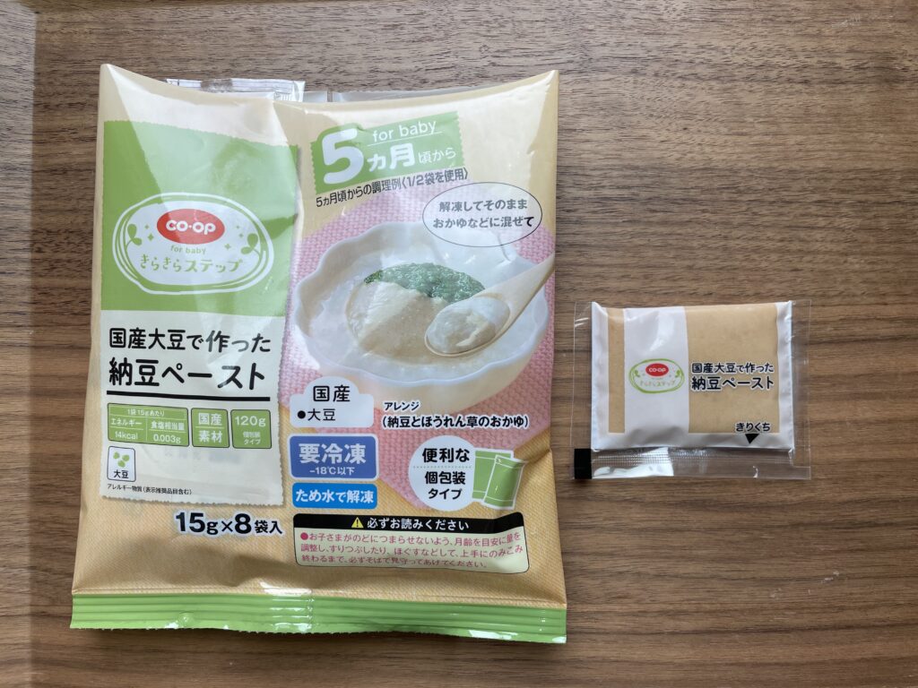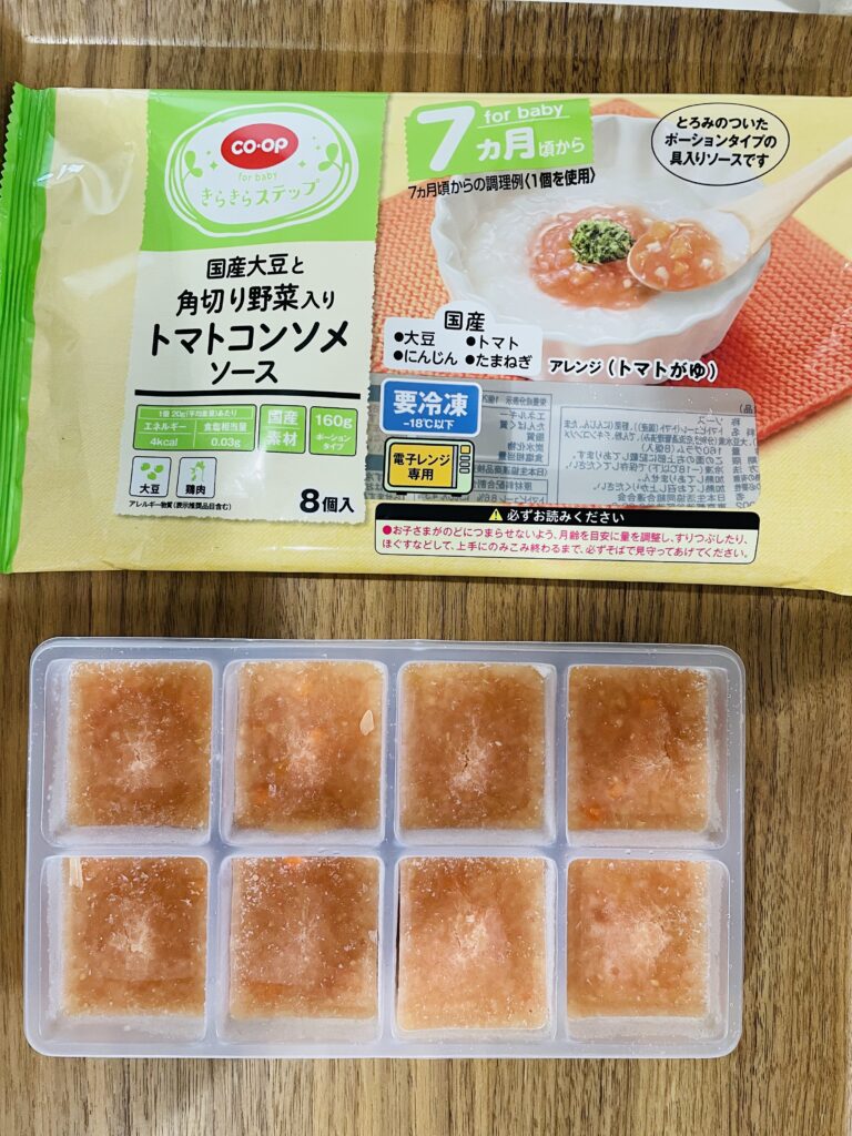 わが家はお粥に混ぜたり、コープデリの『国産大豆と角切り野菜入りトマトコンソメソース』と組み合わせてあげていました。