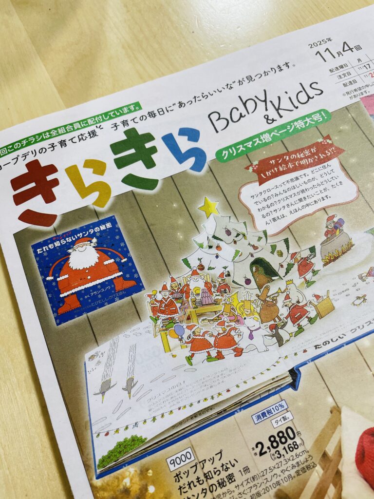 今回のカタログは2025年11月中旬に届いたカタログですが、もうクリスマスの特集が載っています!
