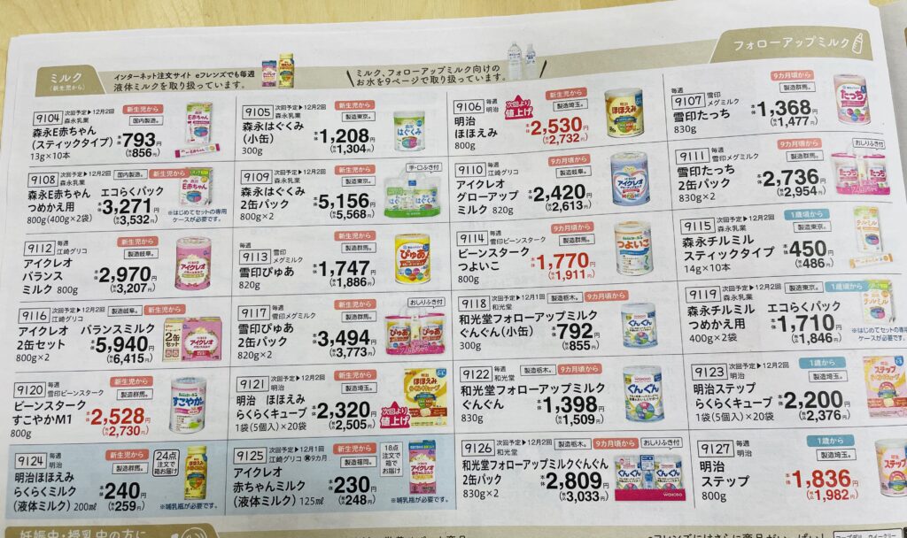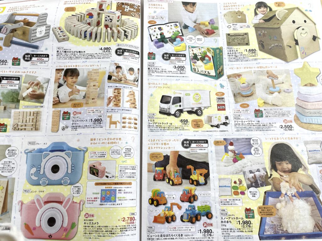 さらにオムツやおもちゃなどの育児用品まで載っているんです。
