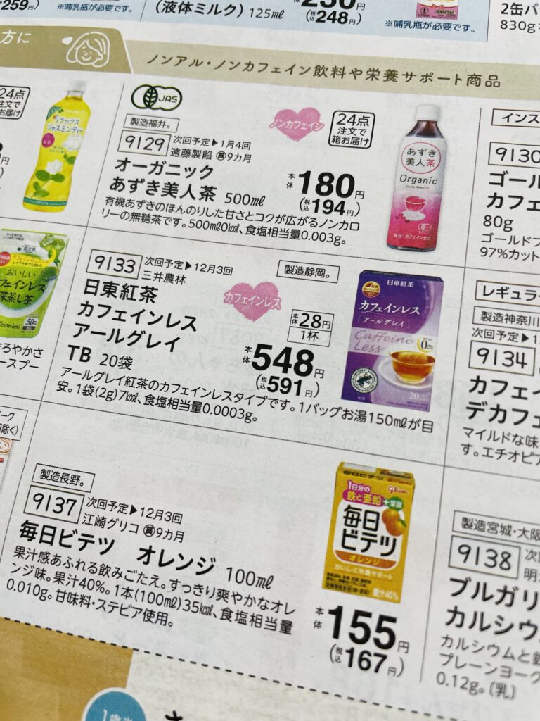 この他には一般商品のお菓子や麦茶、ジュースなどの商品も多く掲載されていますよ。