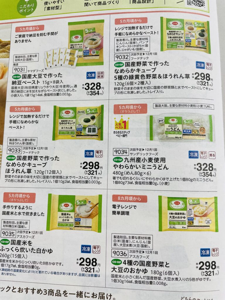 ・コープデリ離乳食カタログにはどんな商品があるか