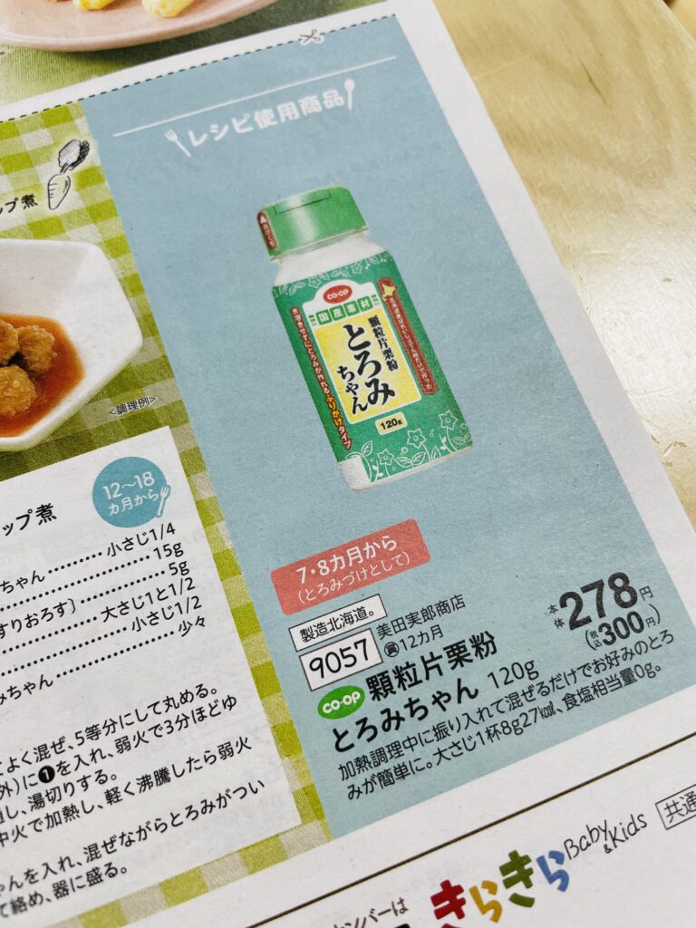 離乳食のとろみづけにとっても便利な顆粒片栗粉の存在も、私はコープデリで初めて知りました。